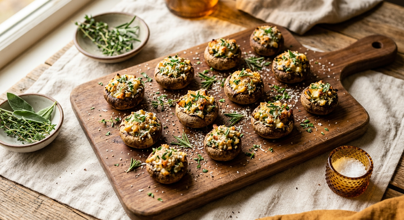 Bite-sized mushrooms filled with savory cheese and herb stuffing. Perfect finger food.