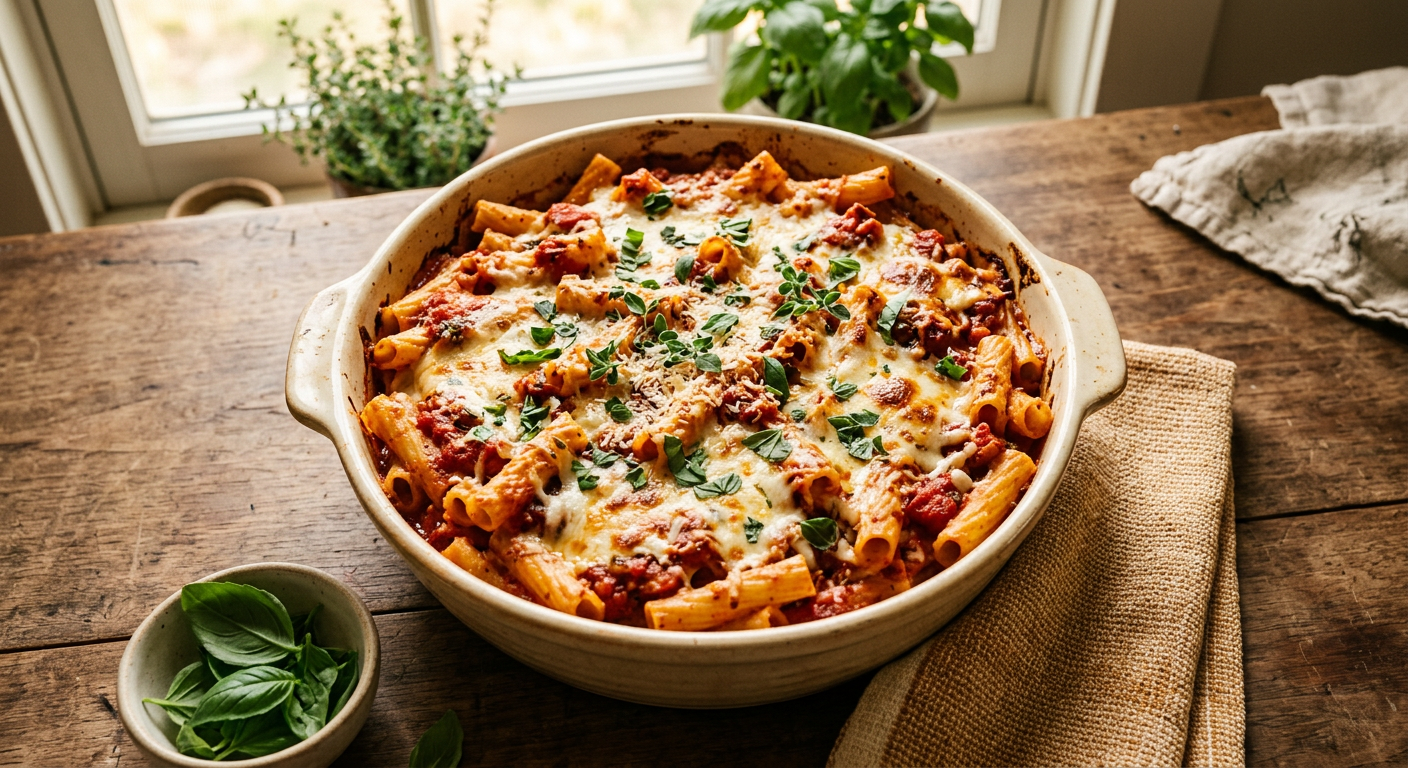 Classic baked pasta with marinara, ricotta, and melted mozzarella. Feeds a crowd and reheats beautifully.