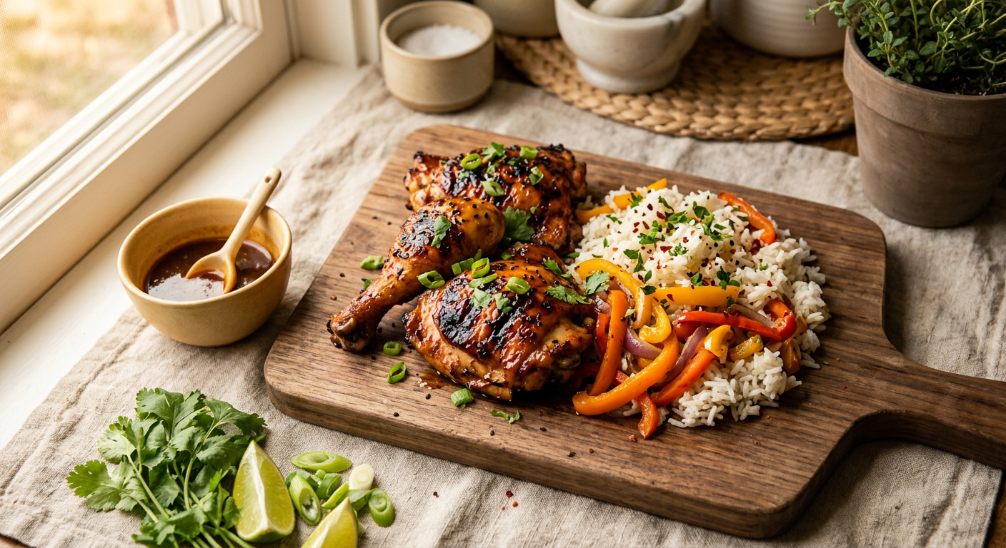 Huli Huli Chicken with Rice and Bell Peppers