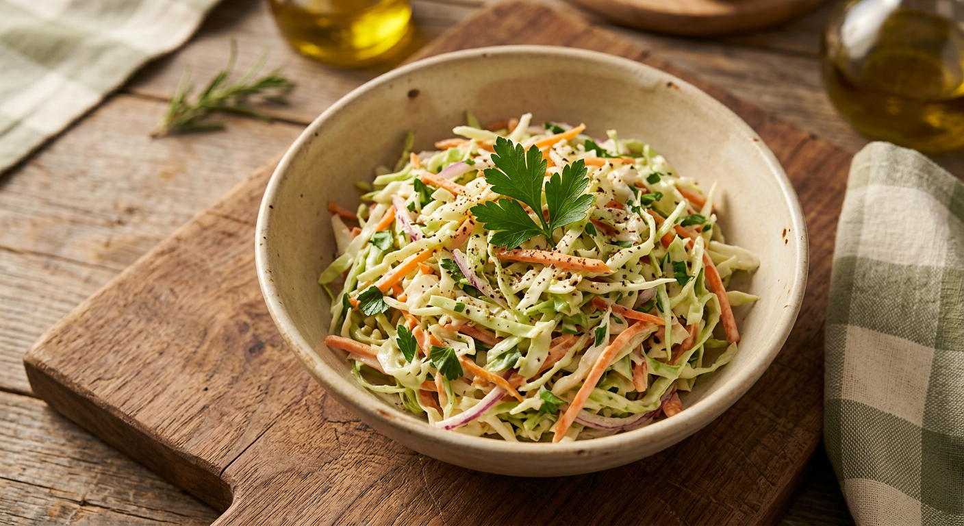 Classic creamy coleslaw with shredded cabbage and carrots. The perfect picnic side.